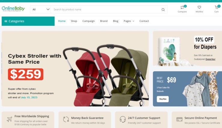Online Baby emphasizes professional digital service presentation and a trustworthy online identity rather than individual product sales.